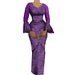 African Clothing Set for Women – 2PC Shiny Outfit with Flare Sleeve Top and Long Pencil Skirt