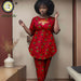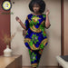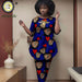 African Women’s Embroidered Shirt and Pants Set – Short Sleeve Ankara Outfit