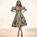Elegant African Midi Dress – High - Waist Ankara Fashion Wear with Short Sleeves - Free Delivery Worldwide only at Flexi Africa