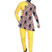 Men’s Bright African Patchwork Outfit – Yellow Pants with Tailored Top, Nigerian Wedding Attire - Free Delivery Worldwide only at Flexi Africa